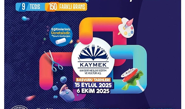 150 farklı branşta, 9 tesiste ücretsiz olarak düzenlenecek hafta içi, hafta sonu; sabah, öğle ve akşam grupları şeklinde planlanan kurslar için kayıtlar www.kaymekonline.com internet adresi üzerinden gerçekleştirilebilecek. Kurslar hakkında detaylı bilgiye de bu internet adresi üzerinden erişebilecek vatandaşlar, 6 Ekim 2025’e kadar kayıt işlemlerini yapabilecek.
